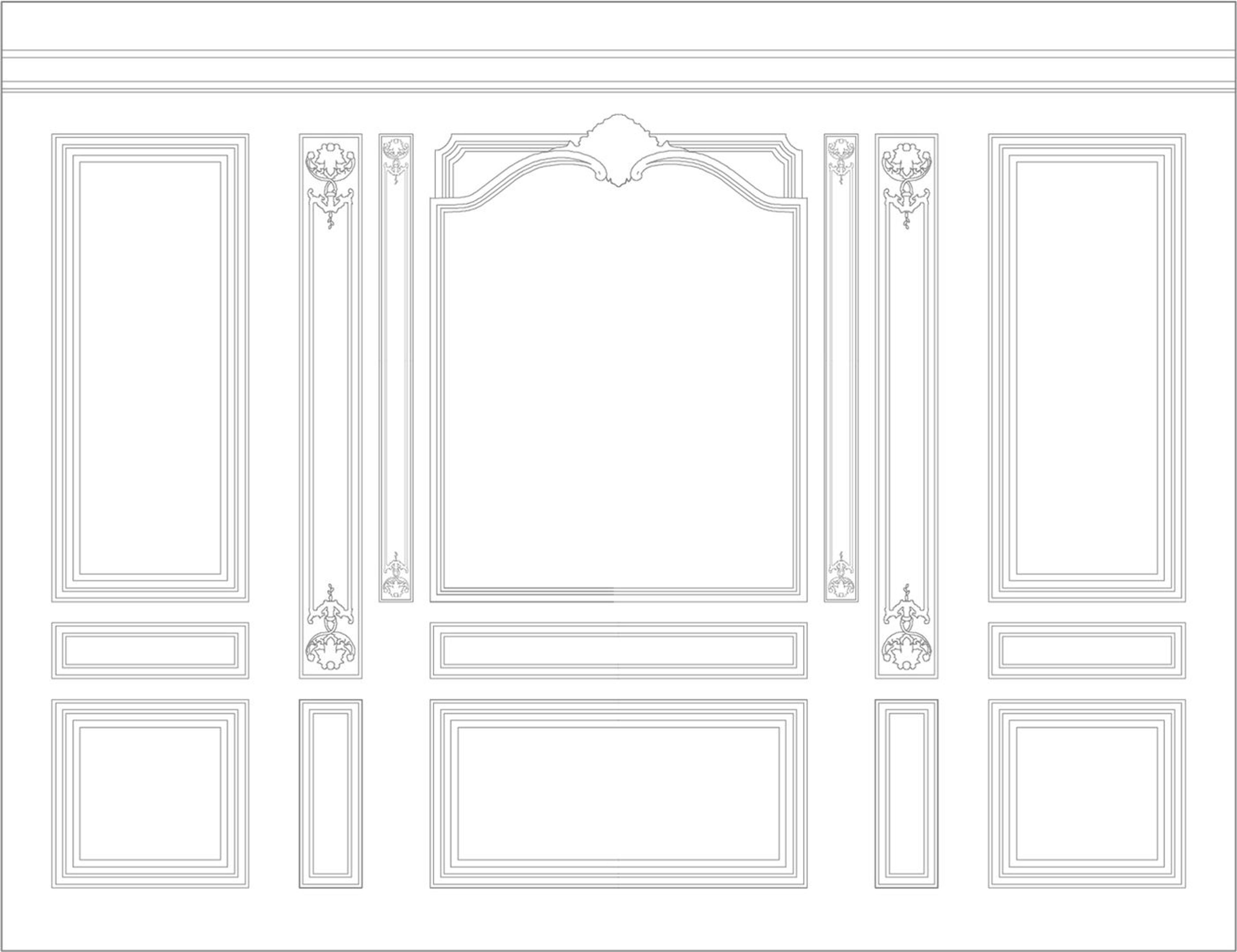 Having established general themes for the design of the wallpaper, we were faced with the challenge of realizing each space in the galleries. Each room was drawn and then rendered in Photoshop with a range of digitized source materials. We sourced marble texture from a stock photograph, the damask patterned wallcovering from a photograph of the Museum's own Wrightsman galleries, and the gilded woodwork imagery from a set of heliographs made by Edouard Baldus at Versailles in the nineteenth century (a portfolio of which we borrowed from The Met's Watson Library).