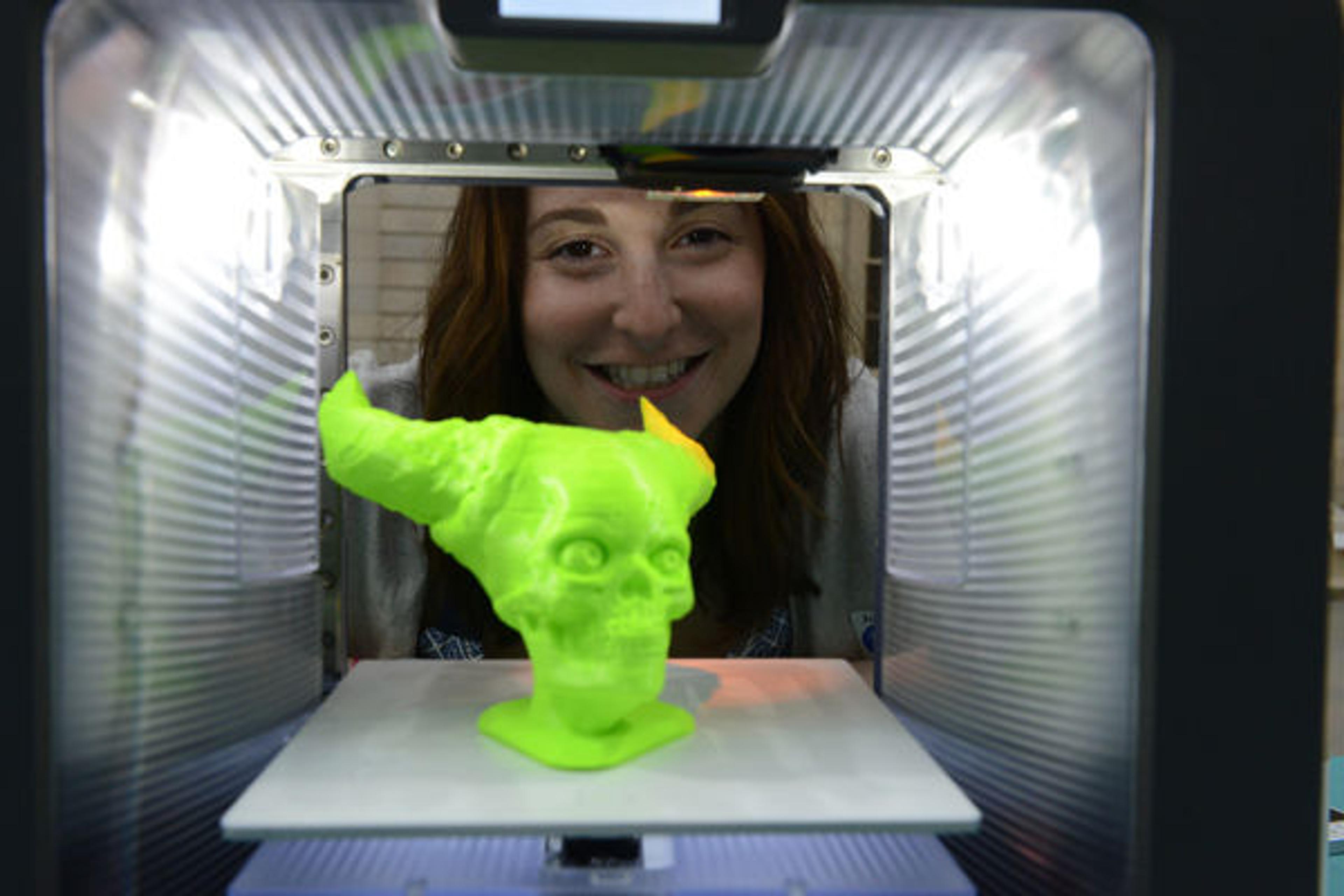 A teen admiring one of 3D Systems's 3D-printed objects