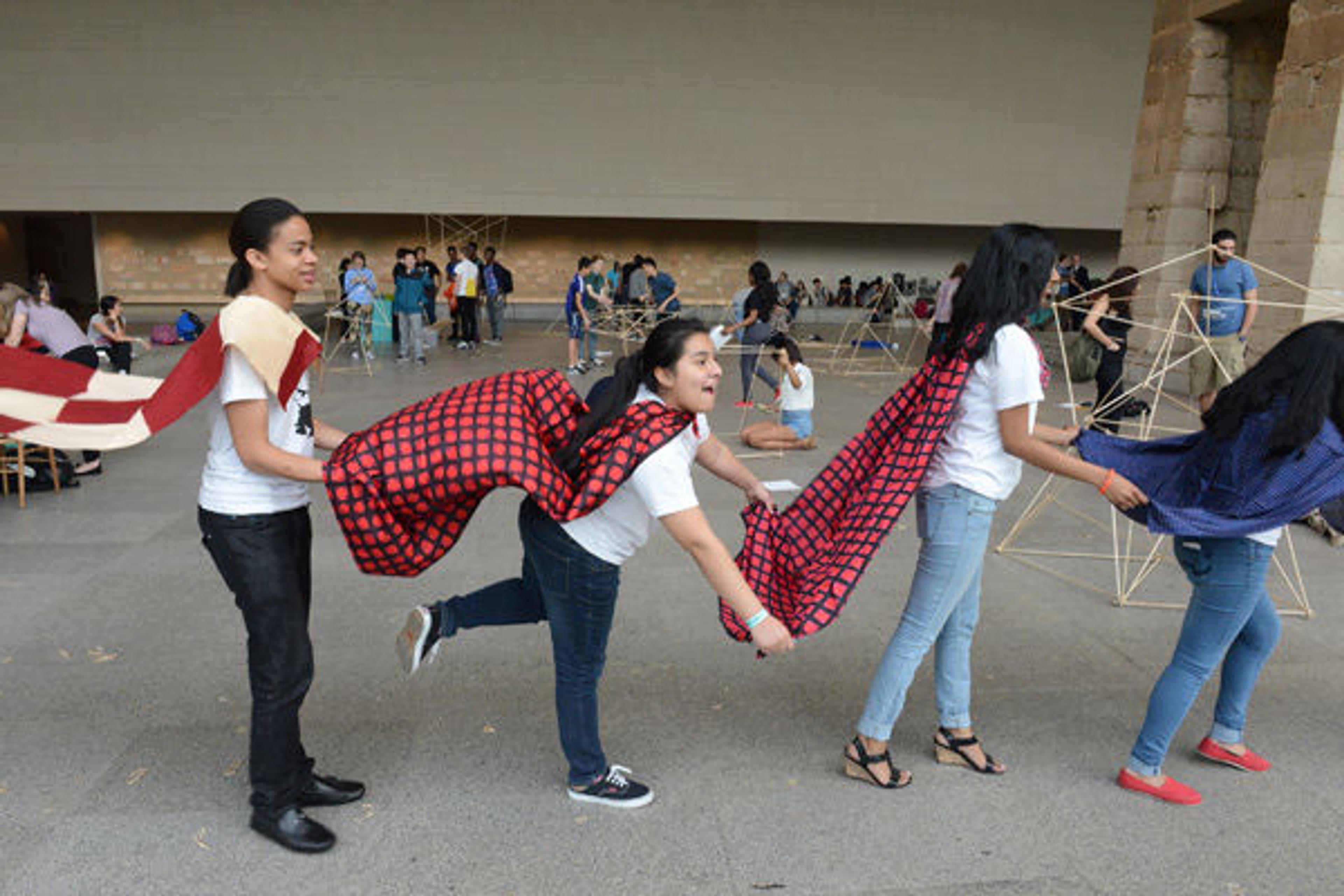 Teens becoming superheroes with El Museo del Barrio in front of The Temple of Dendur
