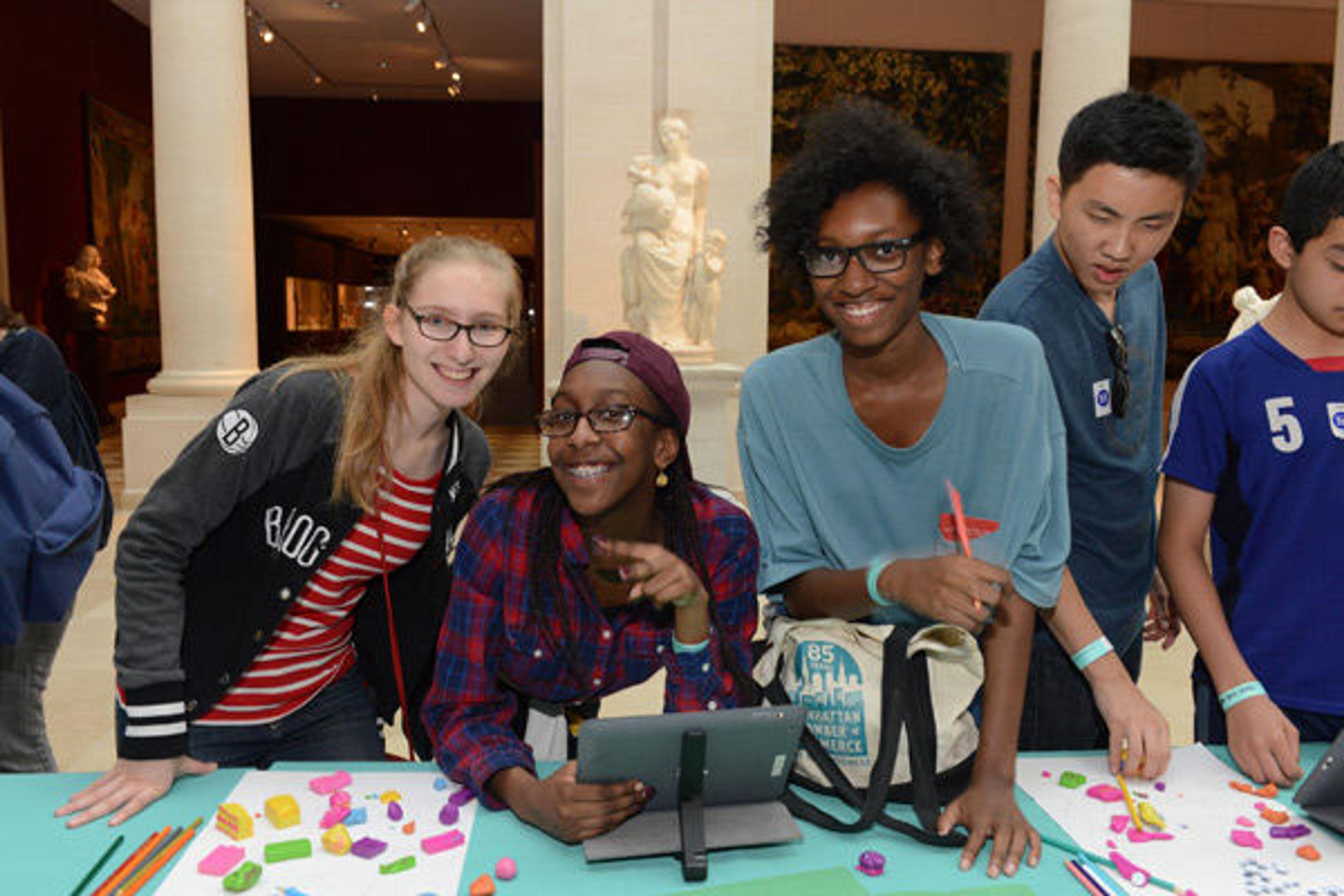 Teens smiling at the the New York Public Library's Claymation station