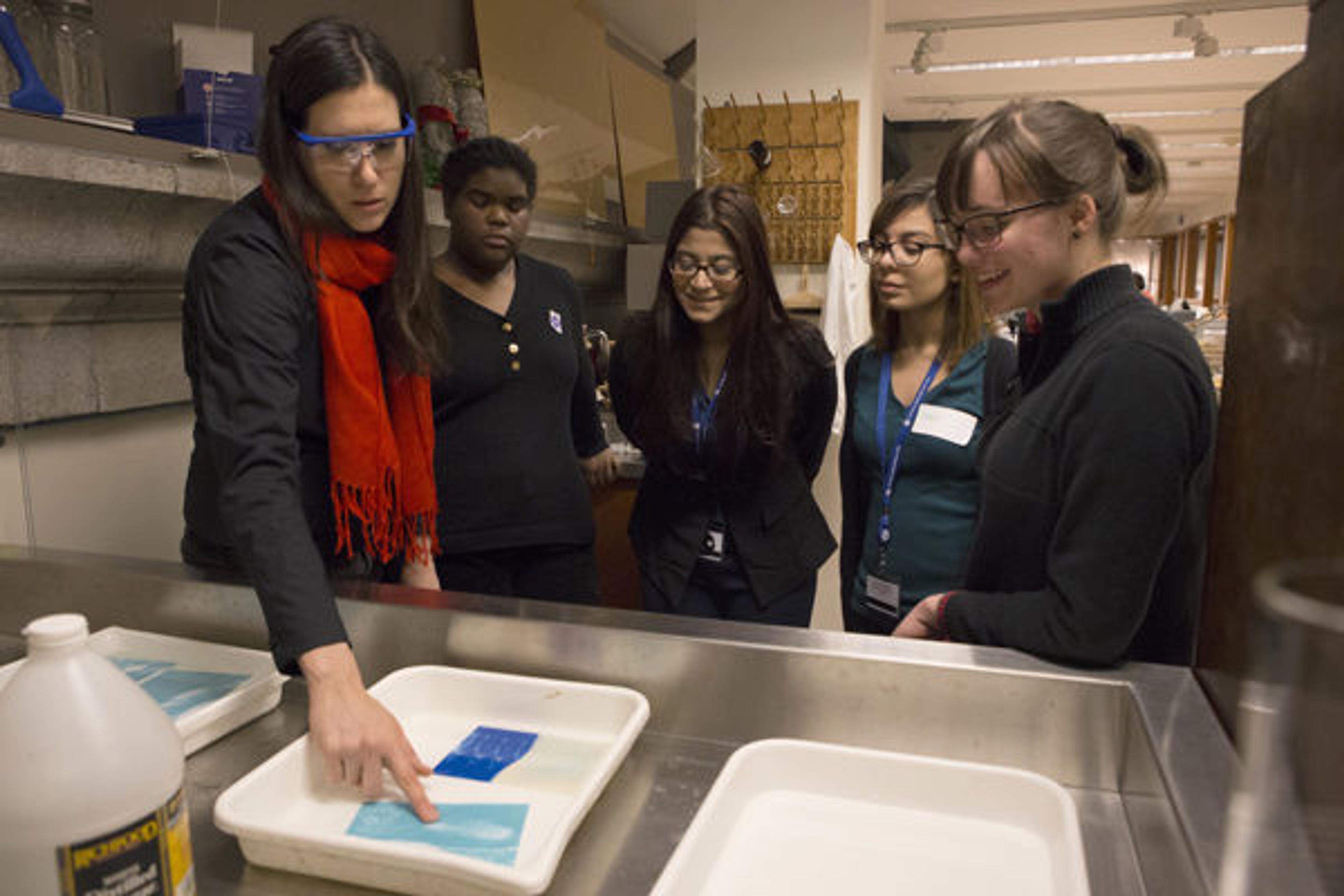 Photograph Conservation Fellow Jana Krizanova shows teens how photograph printing involves chemistry in the Photograph Conservation Lab