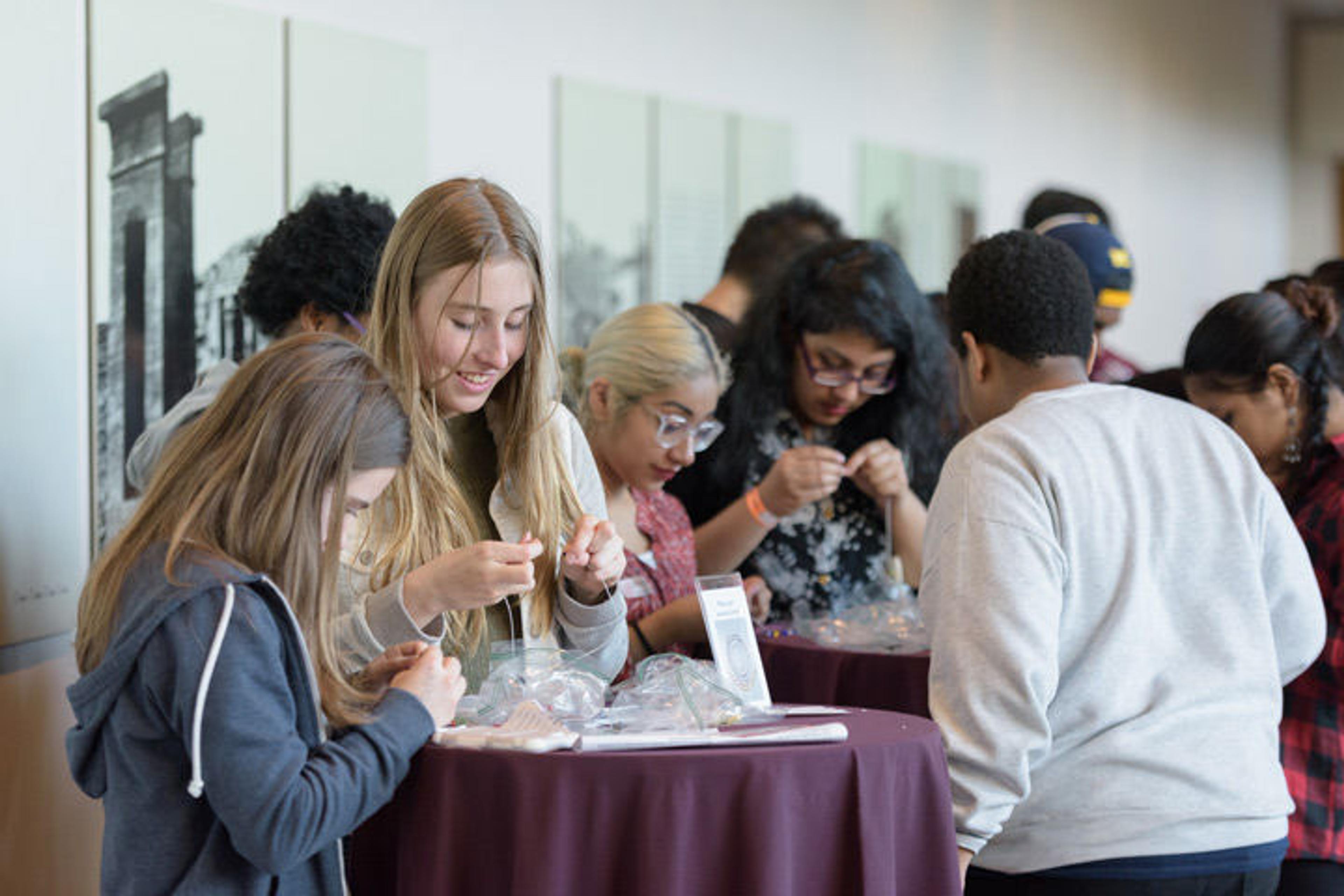 Teens making jewelry in The Temple of Dendur. Photo by Filip Wolak