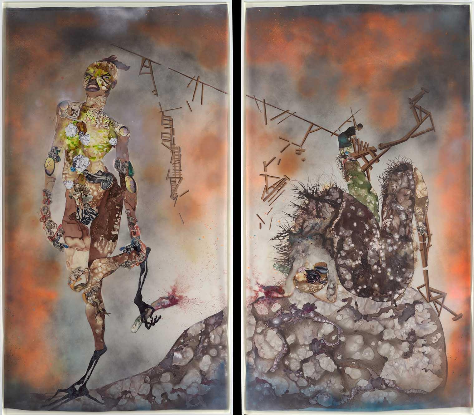 Wangechi Mutu (Kenyan-American, born Nairobi, 1972). My Strength Lies, 2006. Ink, acrylic, photomechanically printed cut and pasted paper, contact paper, metallic sequin and glitter on two mylar sheets, each: 98 x 53 in. (248.9 x 134.6 cm). The Metropolitan Museum of Art, New York, Purchase, Bequest of Gioconda King, by exchange, 2019 (2019.133a, b) © Wangechi Mutu. Courtesy of the Artist and Gladstone Gallery, New York and Brussels