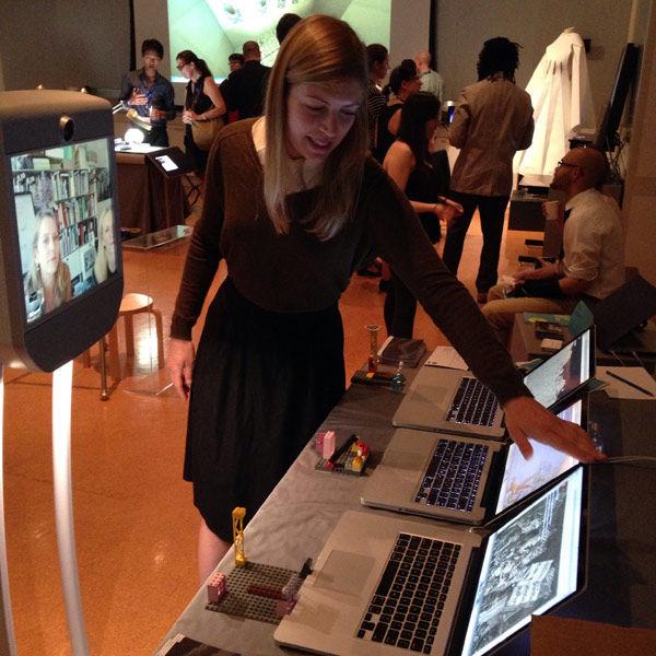 Emily presenting The Met Chrome Extensions to remote visitors, including Paola Antonelli, Director of R&D at the MoMA, using the Beam Telepresence Robot