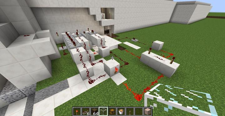 Behind the scenes, you can find the redstone circuitry that triggers secret doorways