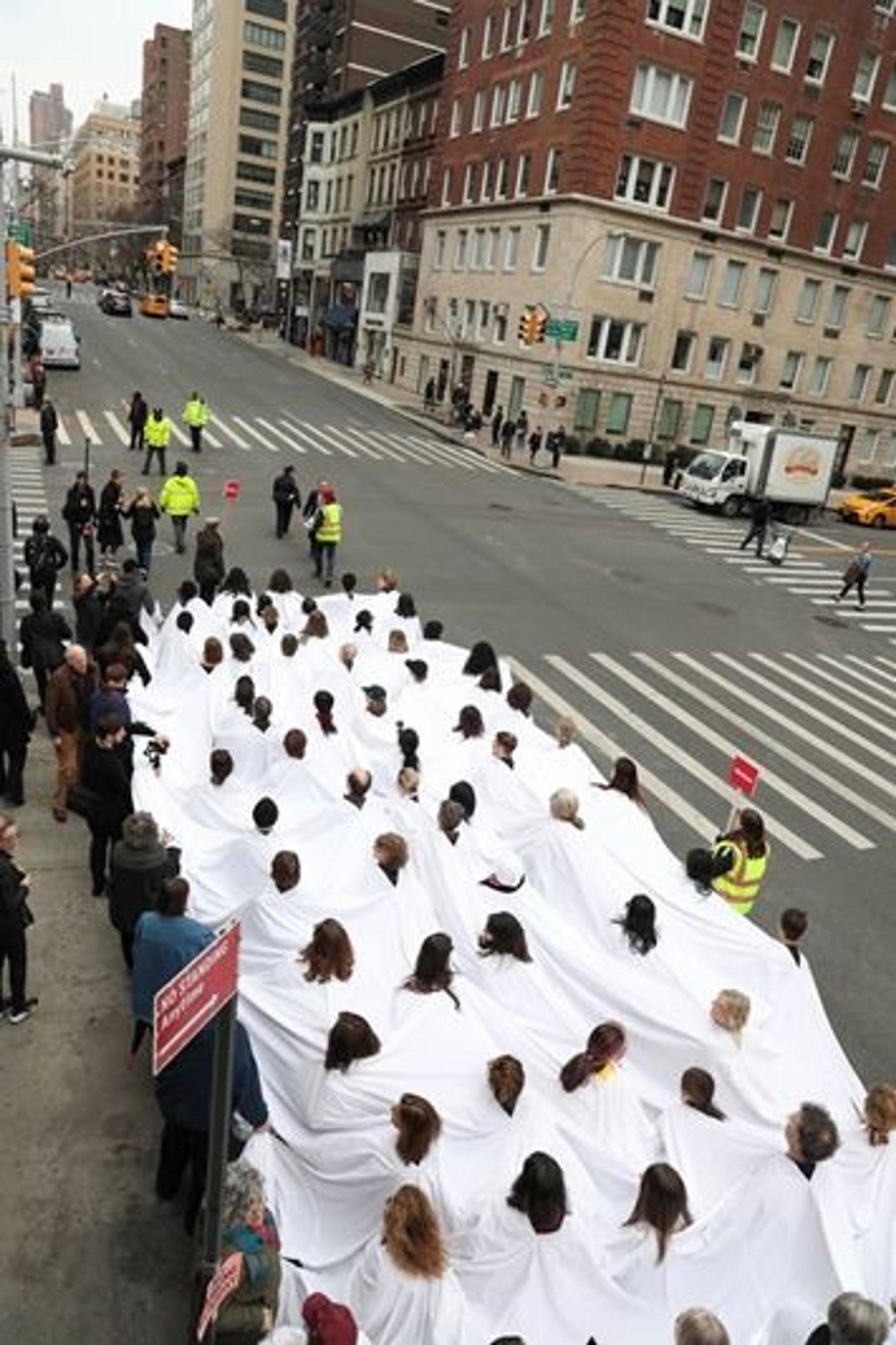 The author takes part in the procession from The Met Breuer to The Met Fifth Avenue. Photo by Paula Lobo