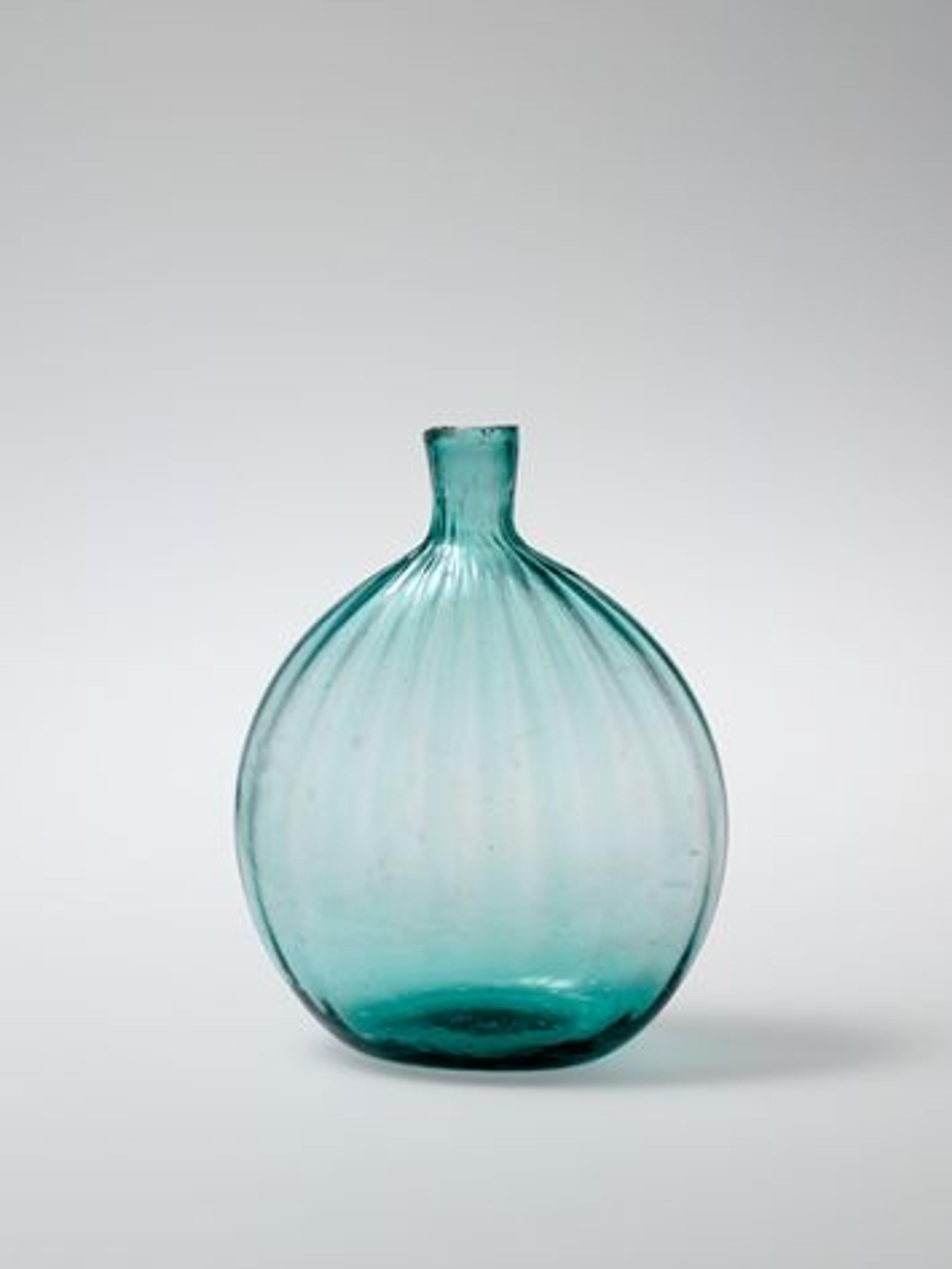 DiMeo's second Memory Palace episode created during his residency, "One Bottle, Any Bottle," takes a close look at this 19th-century pocket bottle. Left: Pocket bottle, 1815–40. American, possibly made in Pennsylvania, United States; probably made in Ohio, United States. Blown-molded glass, H. 5 in. (12.7 cm). The Metropolitan Museum of Art, New York, Gift of Henry G. Schiff, 1980 (1980.502.62)