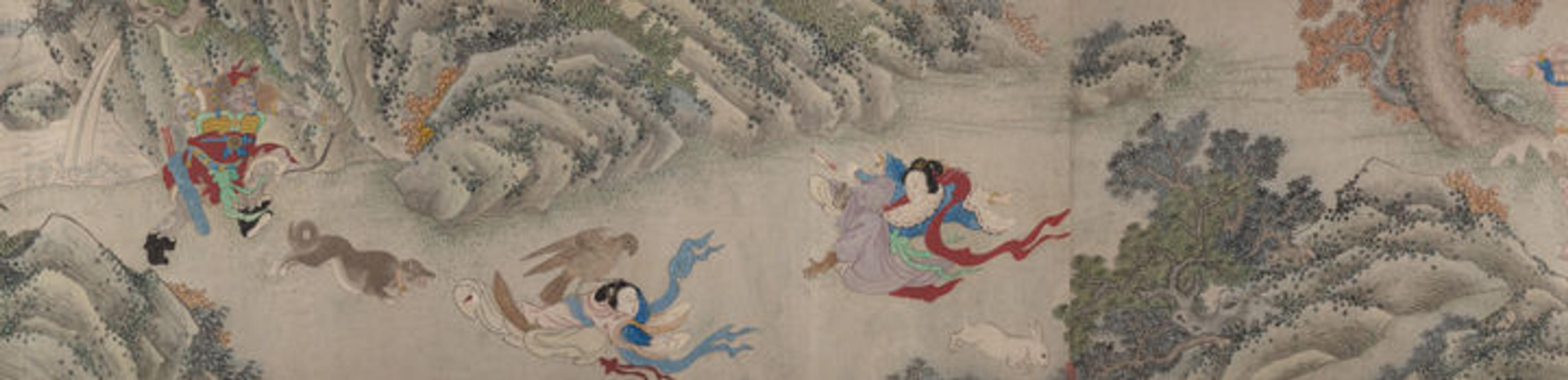 Without any explanatory texts, Searching the Mountains for Demons by Zheng Zhong (active ca. 1612–1648) (fig. 2) depicts a demigod and his ghostly entourage ridding the landscape of demonic creatures. The exorcist operation zigzags through a series of vignettes featuring demons in the form of wild beasts or charming women, whose true identities are revealed by their claws and tails. The dynamic composition conveys the frenzied pace of the hunt as disturbing images of violence are balanced by humorous encounters and the exertions of the hunters.