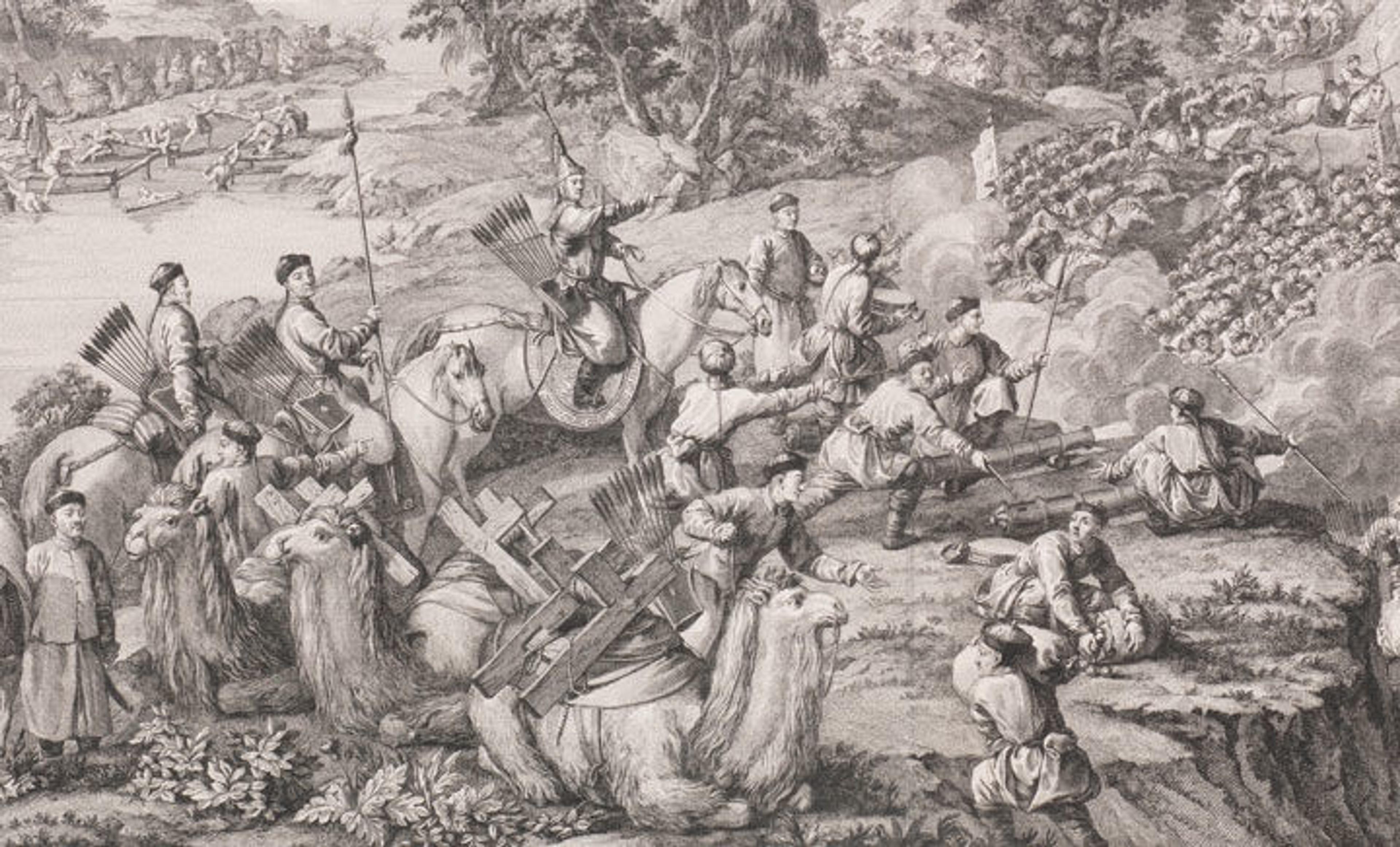 Fig. 6. Jacques Philippe Le Bas (French, 1707–1783), after Giuseppe Castiglione (Italian, 1688–1766). The Lifting of the Siege at the Black River Camp (detail), plate seven from The Conquests of the Emperor of China (Les Conquêtes de l'Empereur de la Chine), 1771. Etching and engraving, Plate: 22 5/8 x 36 11/16 in. (57.5 x 93.2 cm). The Metropolitan Museum of Art, New York, Harris Brisbane Dick Fund, 1945 (45.100.7)