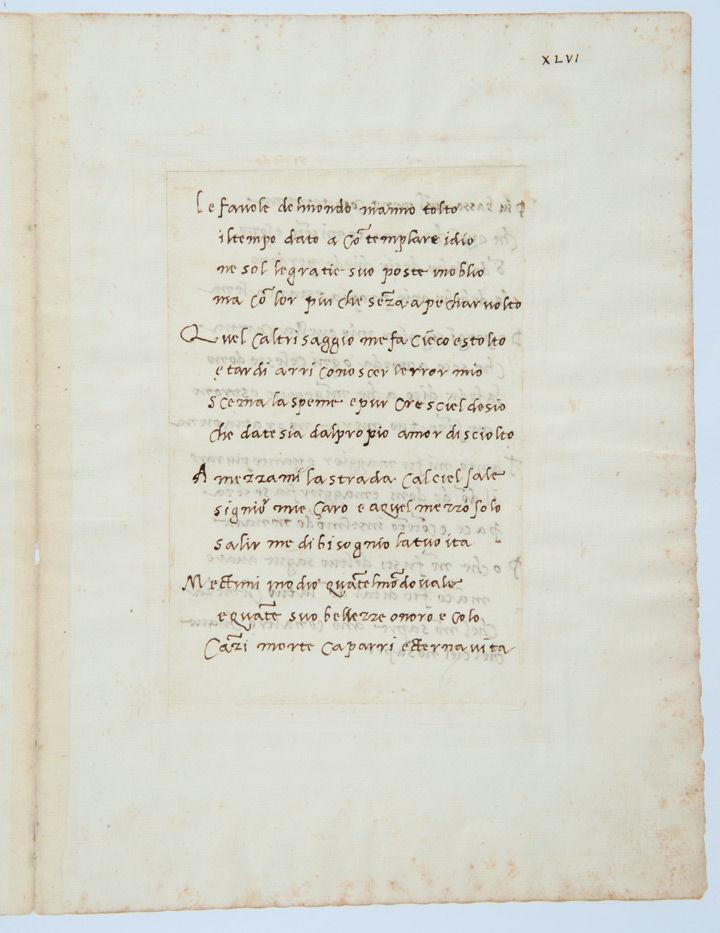Michelangelo Buonarroti (Italian, 1475–1564). Sonnet, "Le favole del mondo," folio XLVI (recto). Biblioteca Apostolica Vaticana, Vatican City (Cod. Vat. Lat. 3211). Read translation.