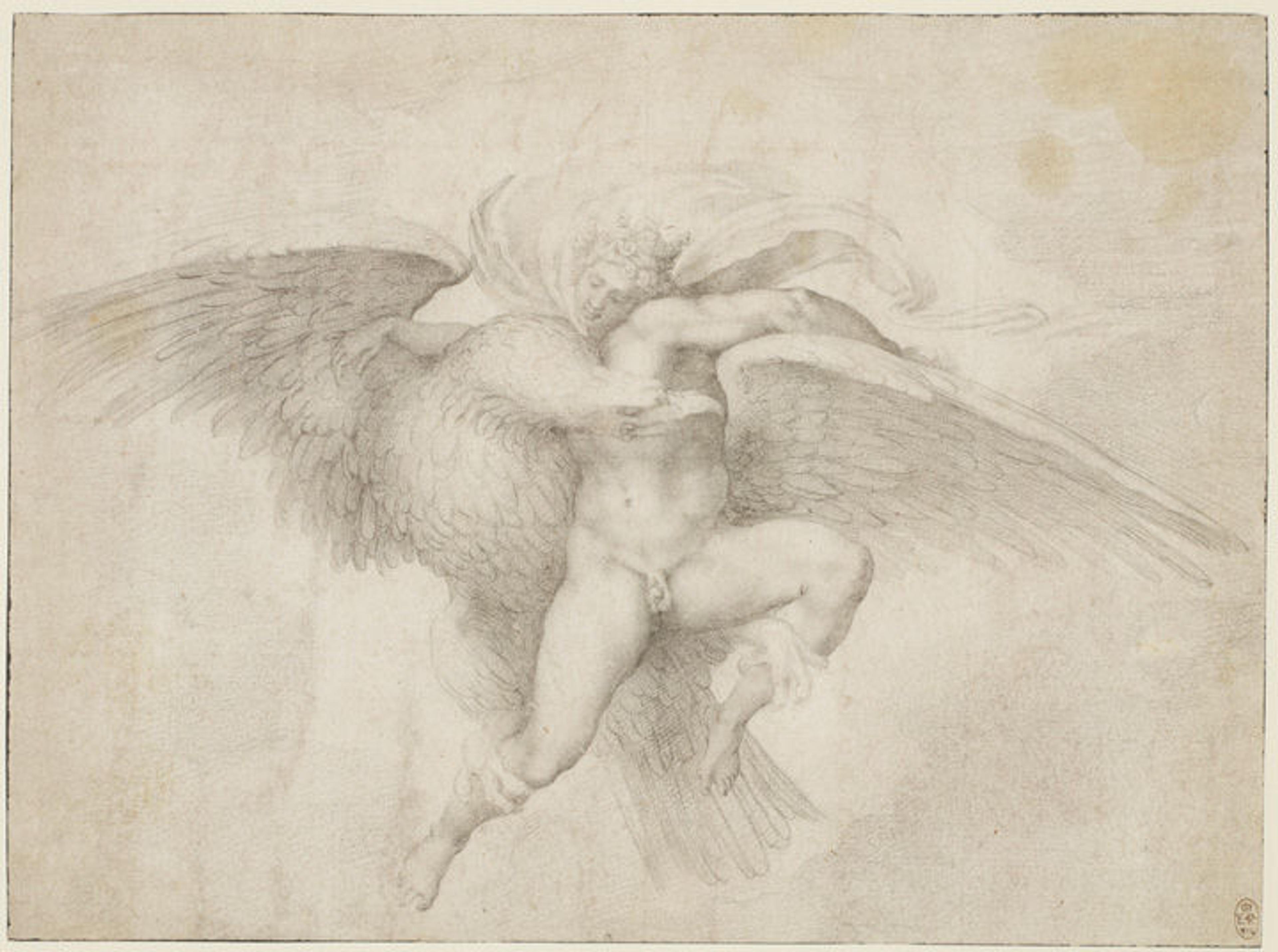 Giorgio Giulio Clovio (Julije Klović) (Croatian, 1498–1578), after a lost drawing by Michelangelo. Rape of Ganymede. Black chalk, 7 5/8 x 10 7/8 in. (19.5 x 27.5 cm). The Royal Collection / HM Queen Elizabeth II (RCIN 913036)