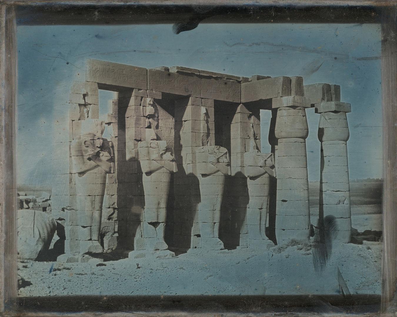 Joseph-Philibert Girault de Prangey (French, 1804–1892). Ramesseum, Thebes, 1844. Daguerreotype, 7 3/8 x 9 7/16 in. (18.8 x 24 cm). The Metropolitan Museum of Art, New York, Purchase, Mr. and Mrs. John A. Moran Gift, in memory of Louise Chisholm Moran, Joyce F. Menschel Gift, Joseph Pulitzer Bequest, 2016 Benefit Fund, and Gift of Dr. Mortimer D. Sackler, Theresa Sackler and Family, 2016 (2016.604)