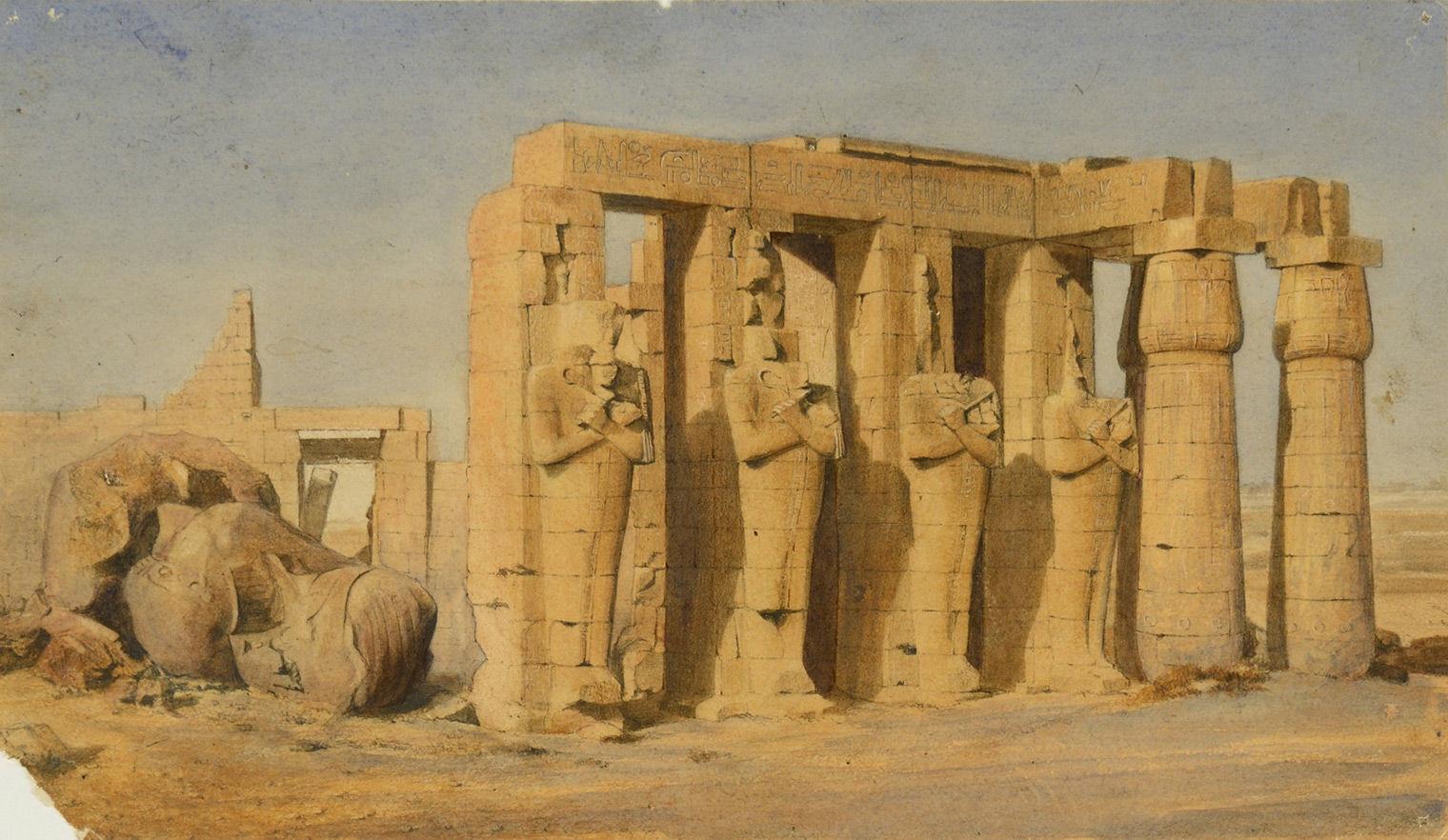 Joseph-Philibert Girault de Prangey (French, 1804–1892). Ramesseum, Thebes, ca. 1844. Watercolor, 7 3/16 x 12 5/16 in. (18.2 x 31.3 cm). Musée d'Art et d'Histoire, Langres, Fonds Flocard (2012.14.41)