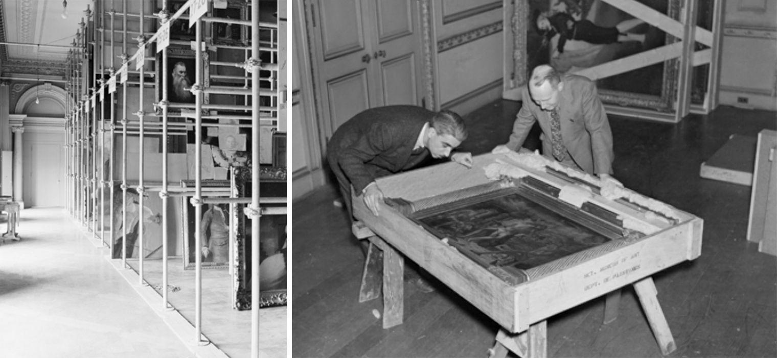 Experience in England had already shown that museums were not immune to attack by enemy forces. Met Director Francis Henry Taylor and his administration looked to their English colleagues for advice on the best ways to protect the collection onsite and the potential need to remove parts of the collection to safety. As there had been during World War I, Museum officials were greatly concerned about the five-and-a-half acres of skylights over the second-floor paintings galleries, which created a huge target for potential enemy bombers with the light it emitted.