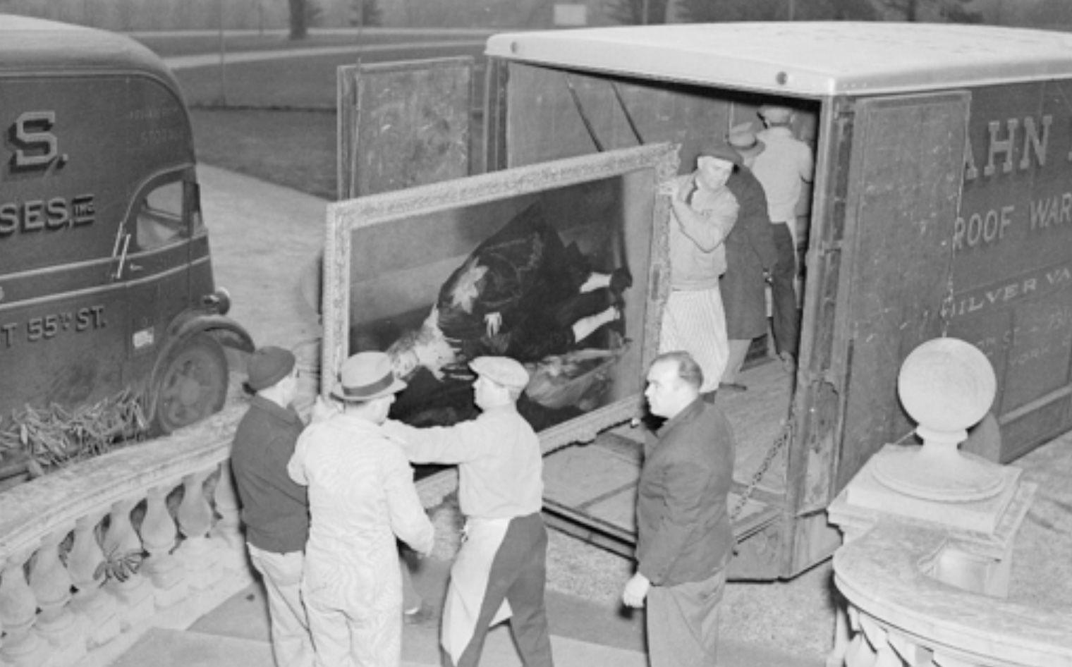 Ninety truckloads of art were transported to Whitemarsh Hall in 1942. Anthony van Dyck's portrait of John Stuart is seen here in transit.