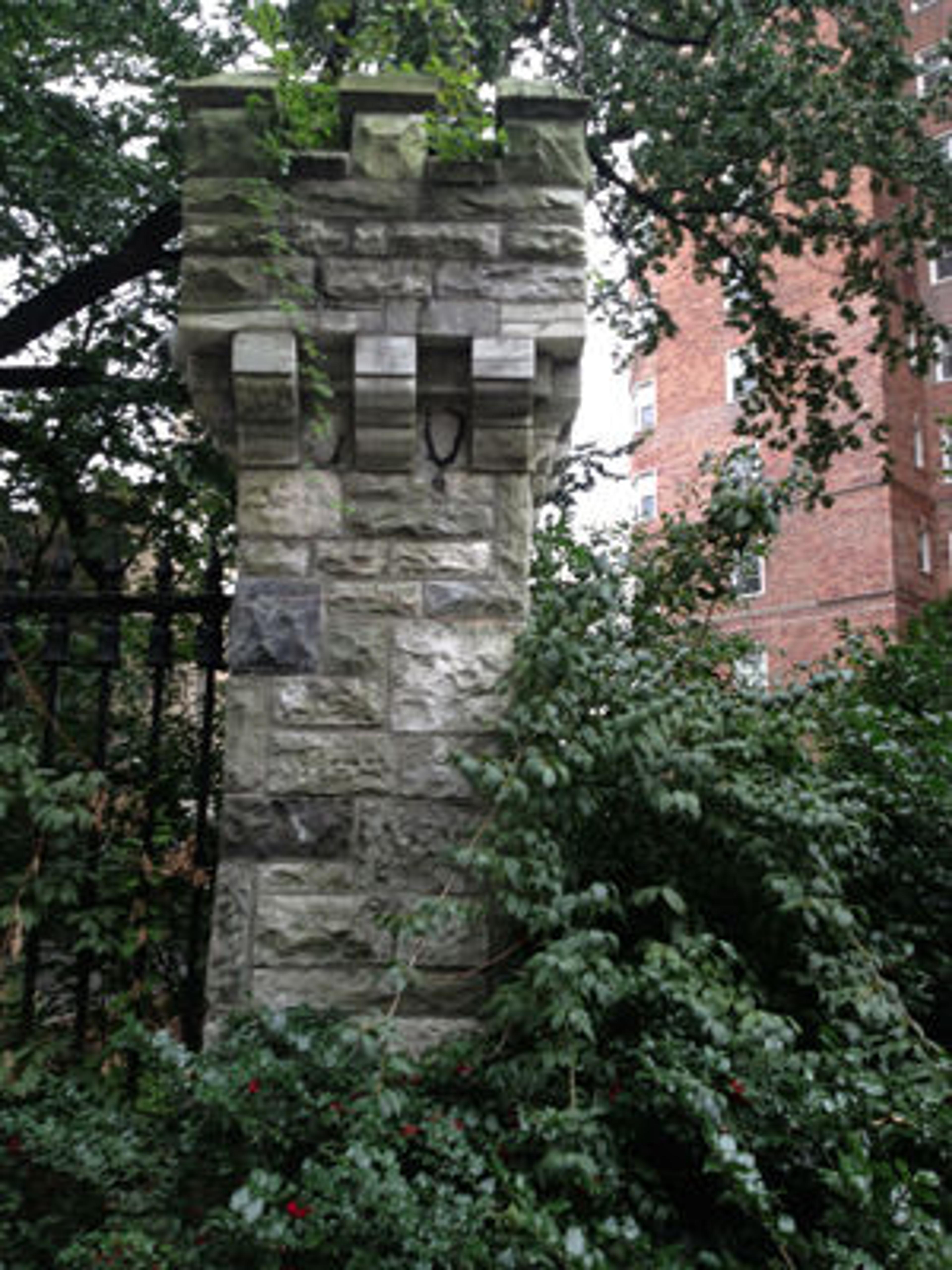 Left: Remaining Paterno Castle pillar, near West 181st Street and Cabrini Avenue, 2013