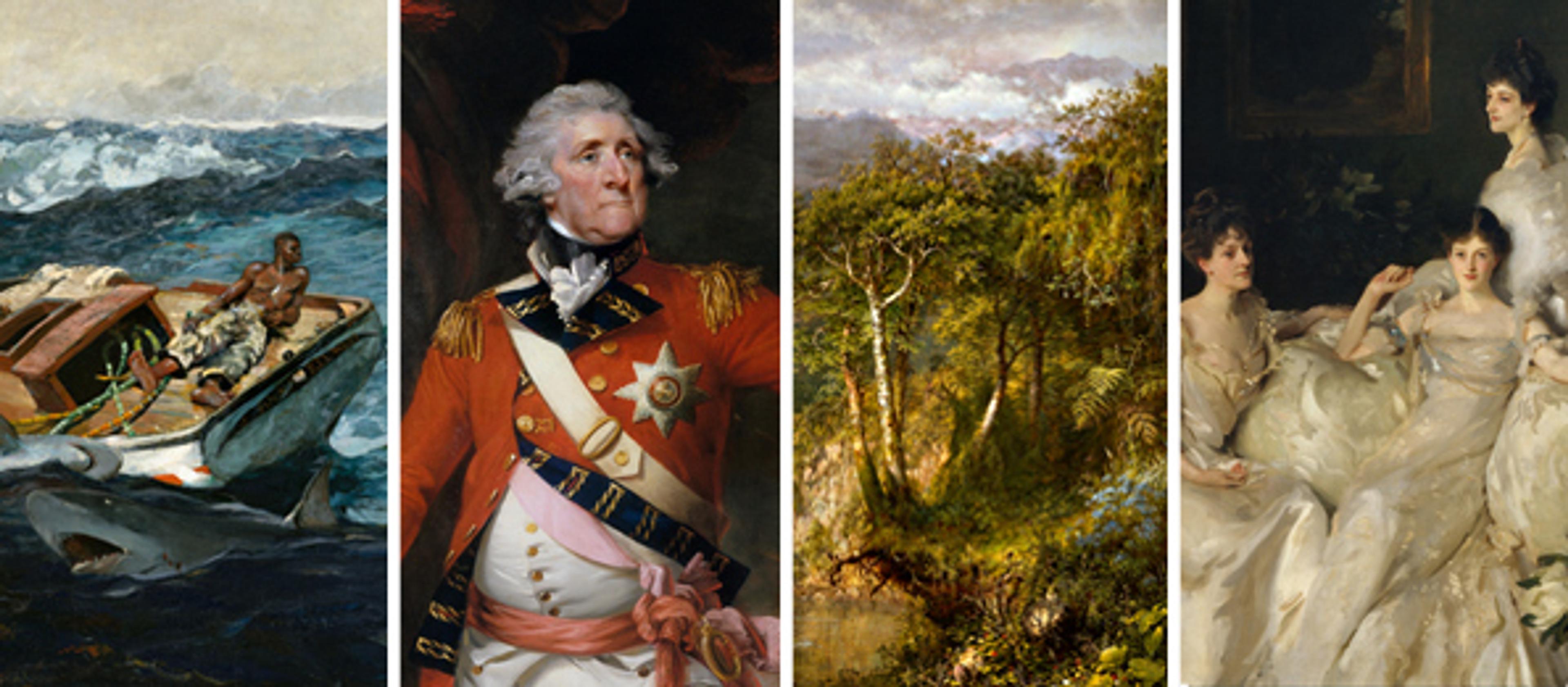 Images above: 1) Winslow Homer (American, 1836–1910). The Gulf Stream, 1899. The Metropolitan Museum of Art, New York, Catharine Lorillard Wolfe Collection, Wolfe Fund, 1906 (06.1234). 2) Mather Brown (American, 1761–1831). General George Eliott, 1790. The Metropolitan Museum of Art, New York, Purchase, 2003 Benefit Fund; Morris K. Jesup, Maria DeWitt Jesup, Dale T. Johnson, John Osgood and Elizabeth Amis Cameron Blanchard and Joel B. Leff Charitable Funds; Iola Haverstick, Dorothy Schwartz and David Hicks Gifts; and Gift of Alice and Evelyn Blight and Mrs. William Payne Thompson, by exchange, 2004 (2004.276). 3) Frederic Edwin Church (American, 1826–1900). Heart of the Andes, 1859. The Metropolitan Museum of Art, New York, Bequest of Margaret E. Dows, 1909 (09.95). 4) John Singer Sargent (American, 1856–1925). The Wyndham Sisters: Lady Elcho, Mrs. Adeane, and Mrs. Tennant, 1899. The Metropolitan Museum of Art, New York, Catharine Lorillard Wolfe Collection, Wolfe Fund, 1927 (27.67).