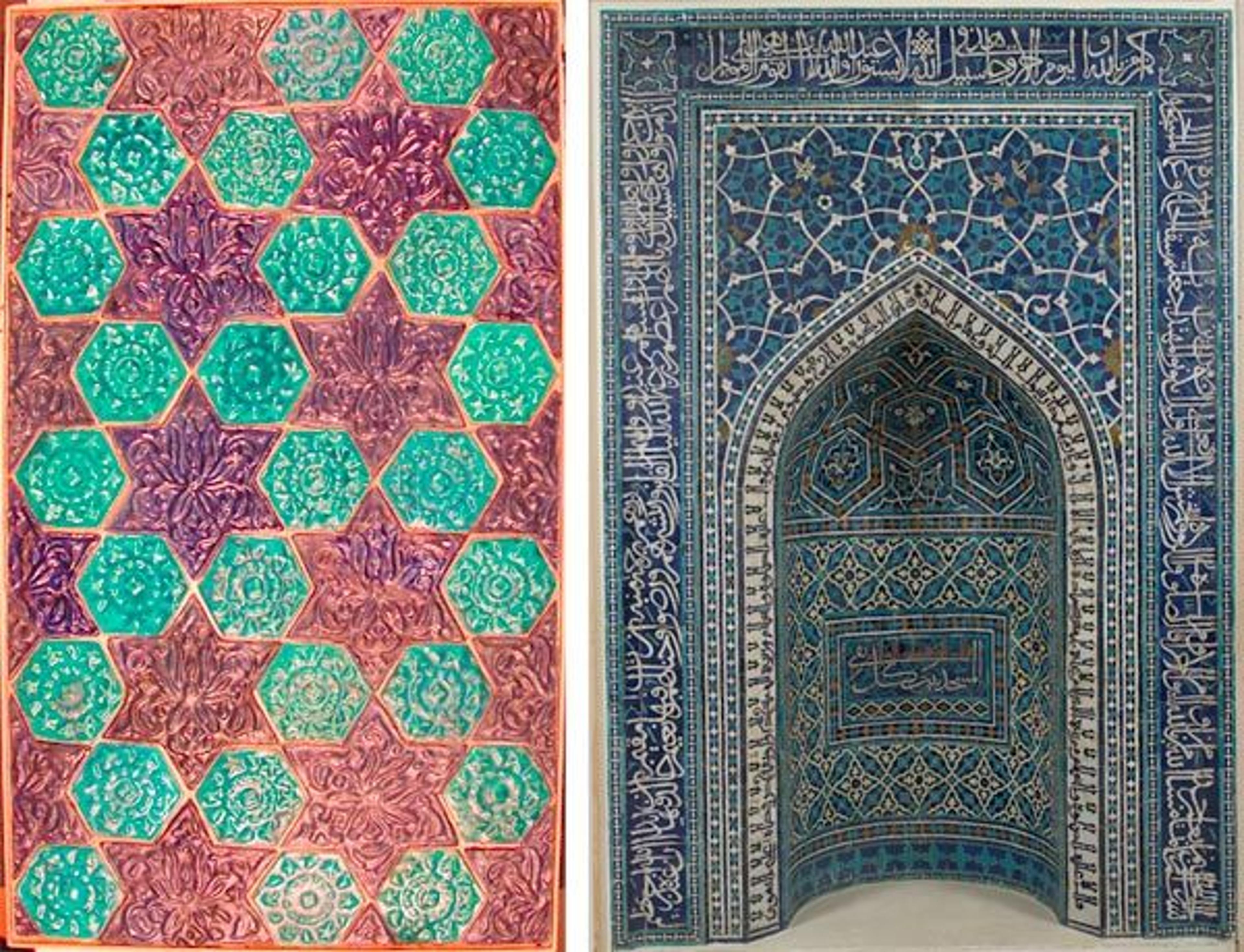 «The Islamic world is famous for its stunning tilework: lavish blue and turquoise ceramic tiles featuring an almost infinite array of geometric patterns. This tilework has adorned the walls of mosques, tombs, and the homes of the wealthy, enhancing the beauty of these spaces, for centuries.»