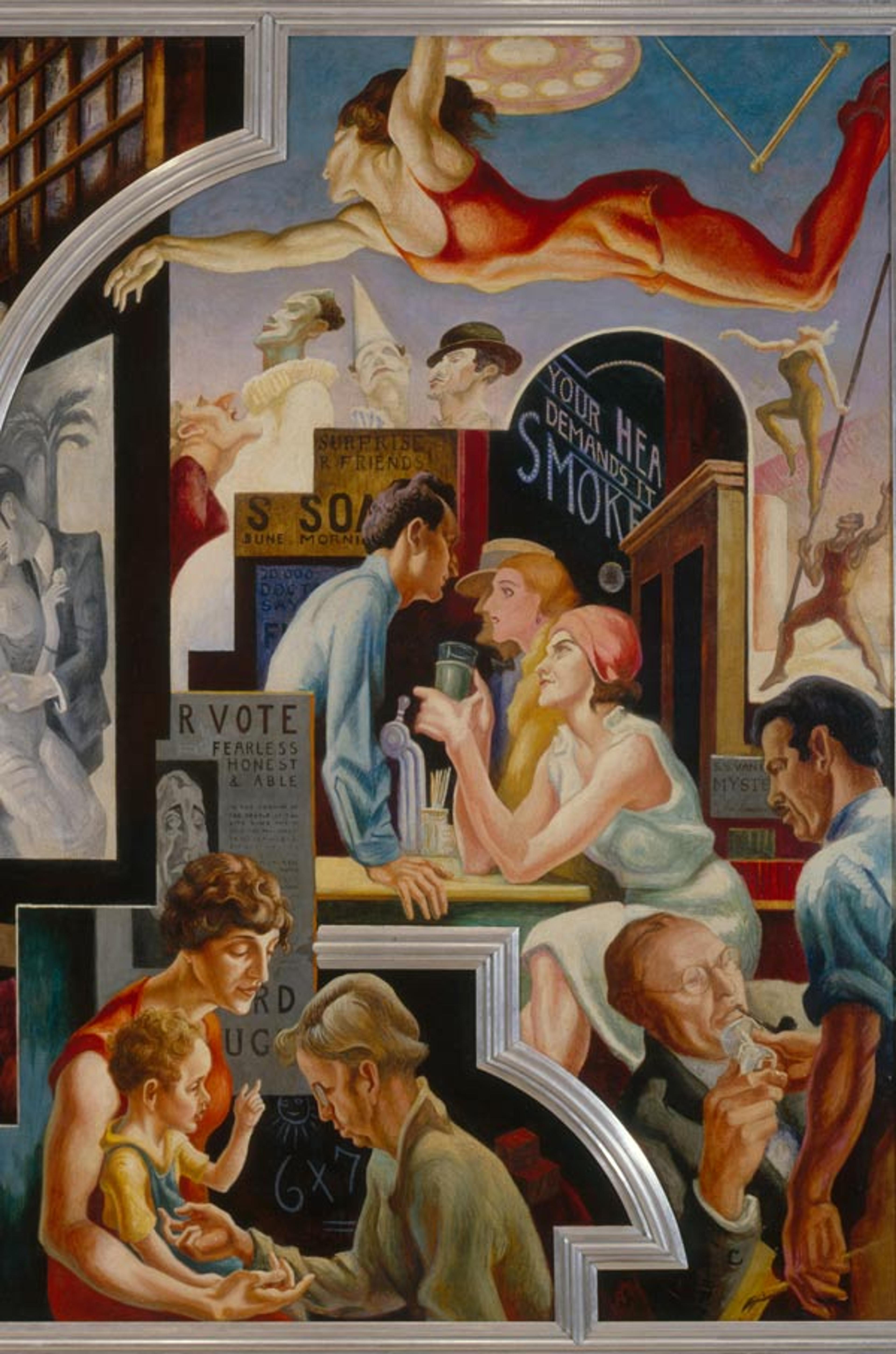 Thomas Hart Benton (American, 1889–1975). City Activities with Dance Hall from America Today (detail), 1930–31. Mural cycle consisting of ten panels. Egg tempera with oil glazing over Permalba on a gesso ground on linen mounted to wood panels with a honeycomb interior. The Metropolitan Museum of Art, New York, Gift of AXA Equitable, 2012