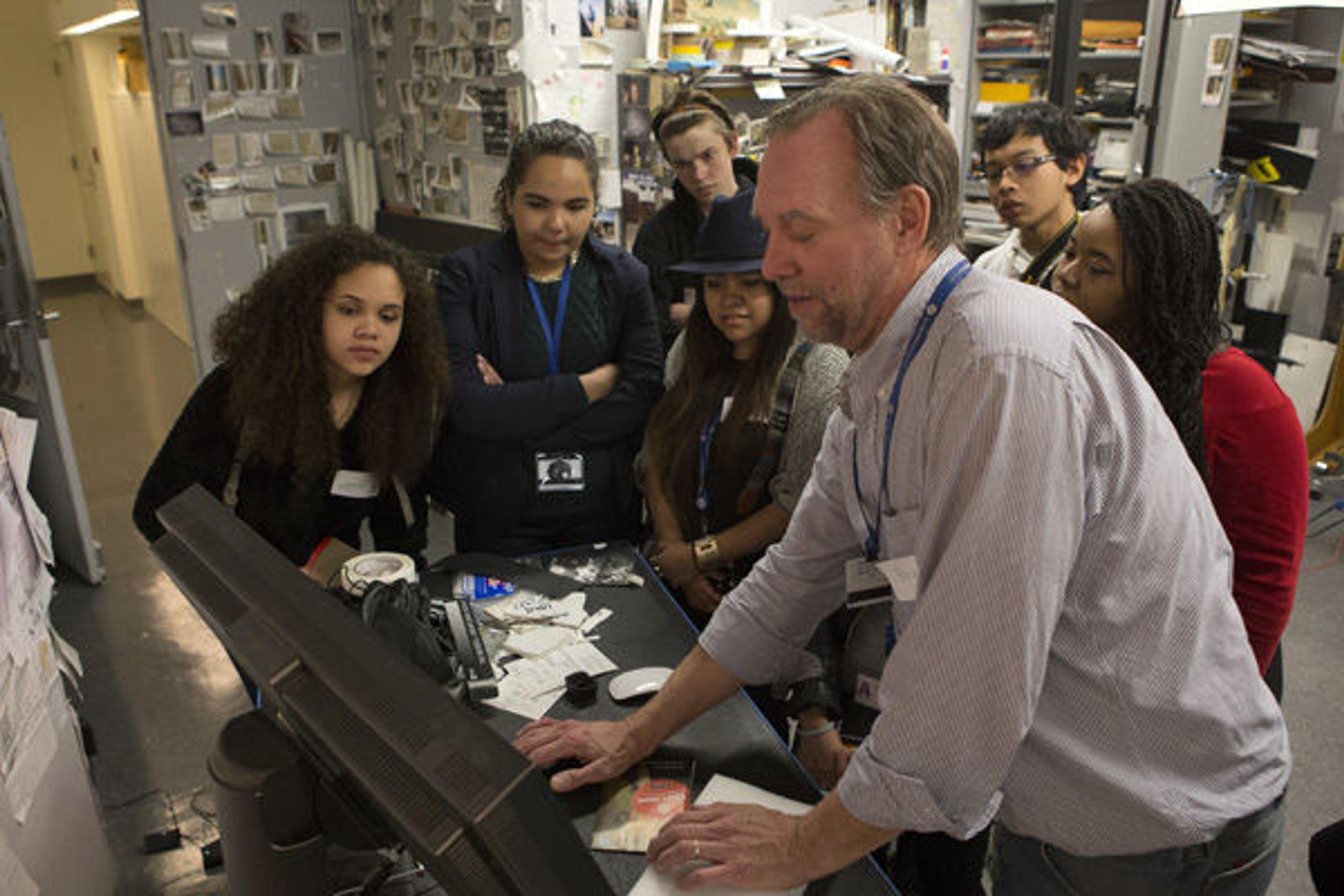 Photograph Conservation Fellow Jana Krizanova shows teens how photograph printing involves chemistry in the Photograph Conservation Lab