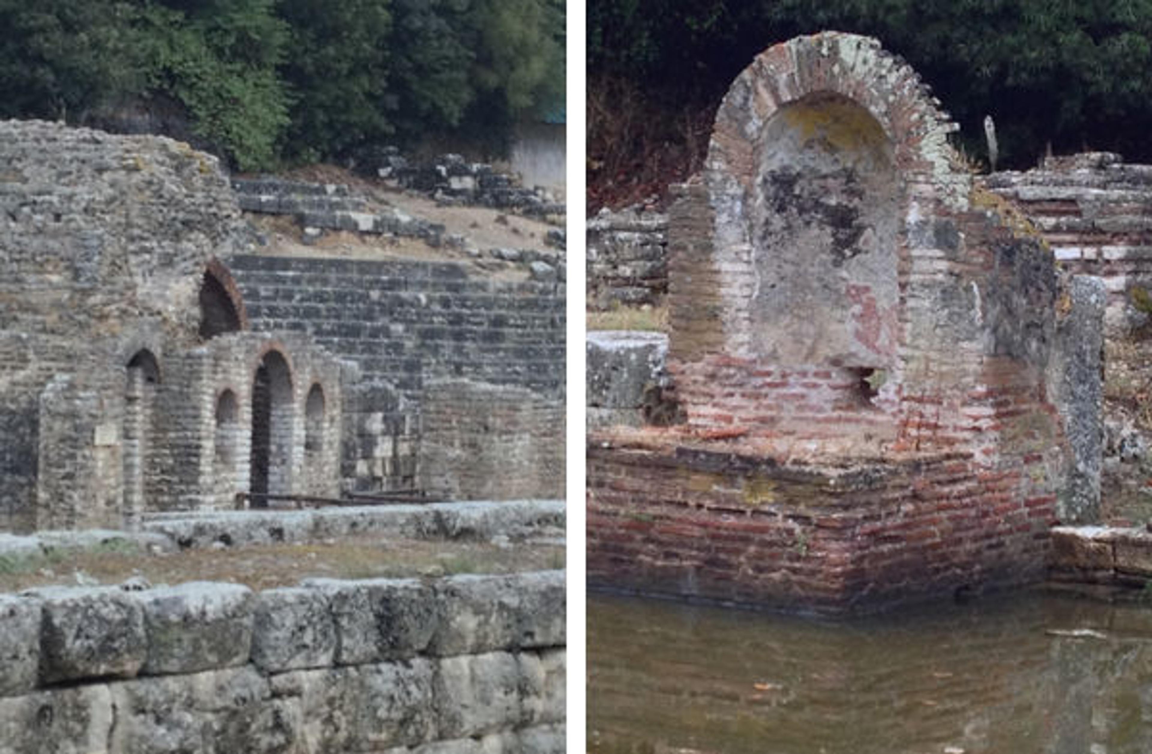 «After a perfectly delightful day at sea, we arrived at Saranda, Albania. Our day's excursion included a bus tour through Saranda and other local Albanian communities to Butrint, a UNESCO World Heritage Site and newly declared national park.» We explored this largely un-excavated wooded site on foot and stepped back into time to view ancient ruins of a lower town, Greek theater, a fallen temple of Asklepios, and an early Christian church (now roofless). We ventured up ancient stone steps to the upper levels, where there is a charmingly small museum featuring a select collection of treasures dug up for the site. It rained a bit, but we all forged on with our sturdy walking shoes and high enthusiasm to get to the upper levels for the picture-perfect views of the Albanian countryside and the neighboring island of Corfu.