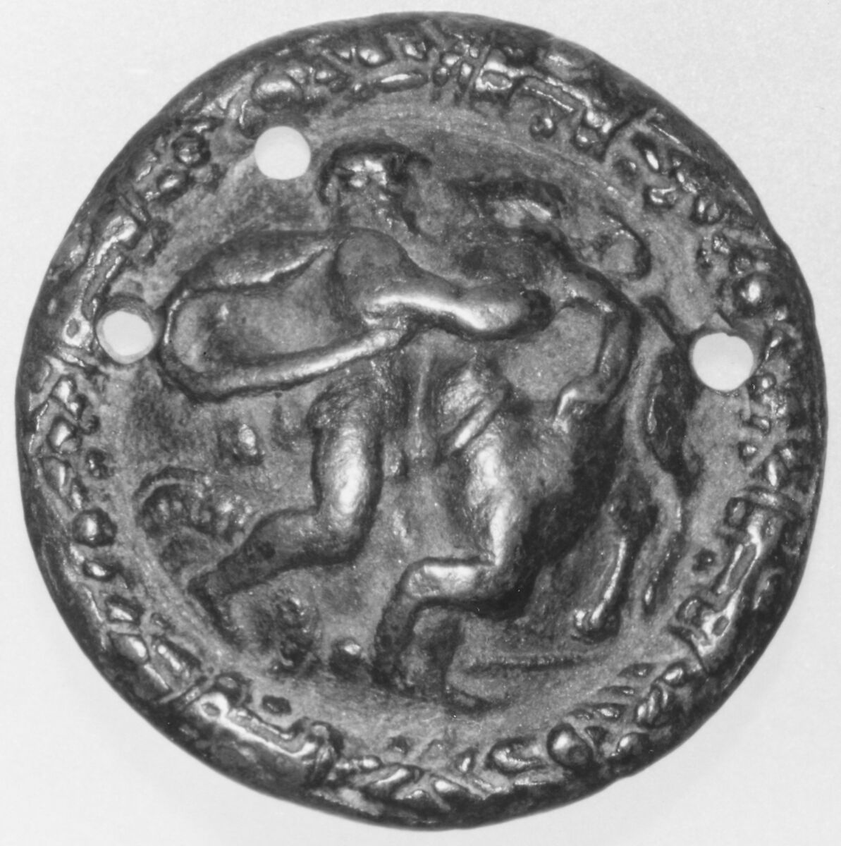 Closely related, though of different sizes, these boss-like plaquettes (see also 1986.319.10) seem to be unique and unpublished. Their subject and style immediately recall the work of Antonio Plllaiolo.