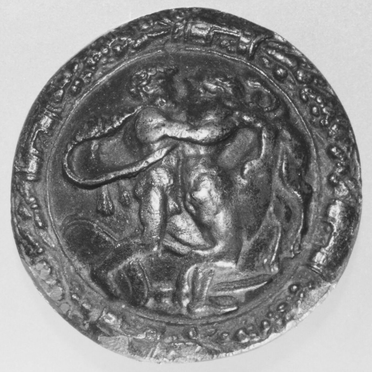 Closely related, though of different sizes, these boss-like plaquettes (see also 1986.319.9) seem to be unique and unpublished. Their subject and style immediately recall the work of Antonio Plllaiolo.