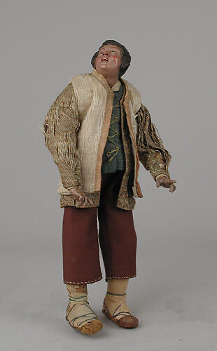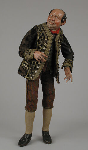 - Medium: Polychromed terracotta head and wooden limbs; body of wire wrapped in tow; silk and linen garments; wood mandolin