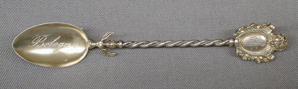 - Title: Souvenir spoon with depiction of Bologna's medieval towers