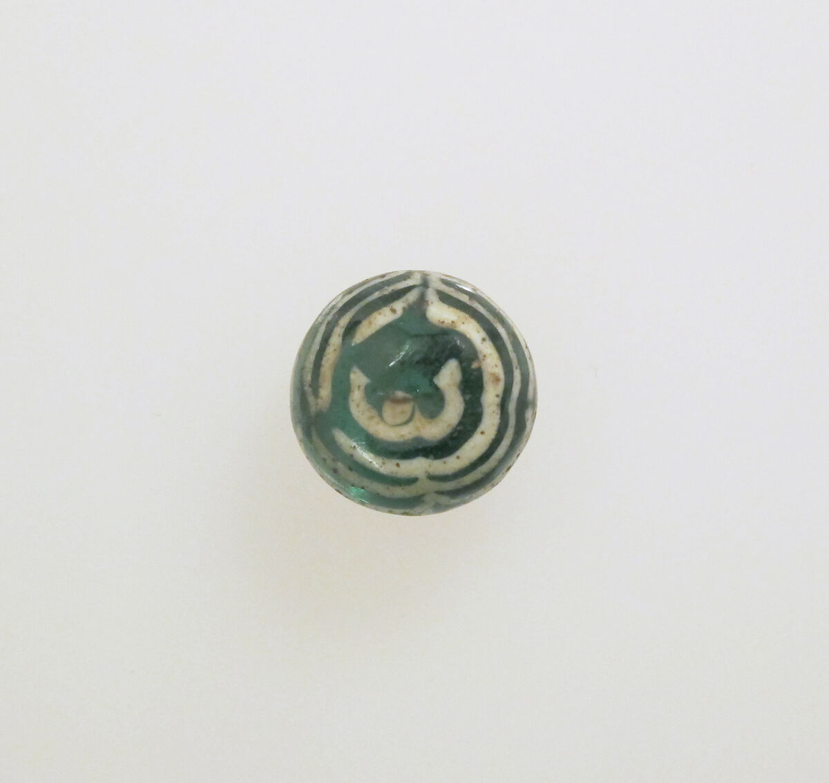 Complete, but polished chip on bottom; many pinprick bubbles; surface pitting.