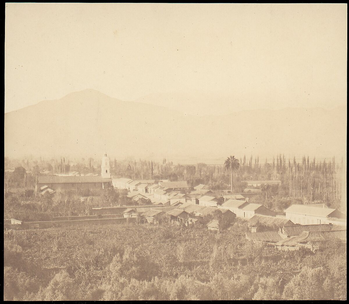 - Title: [Town on Plain with Mountain in Background]