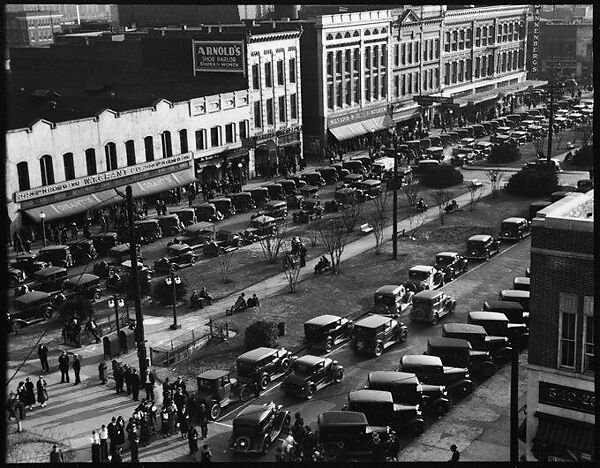 - Title: [Stores and Parked Cars on Main Street, From High Elevation, Macon, Georgia]