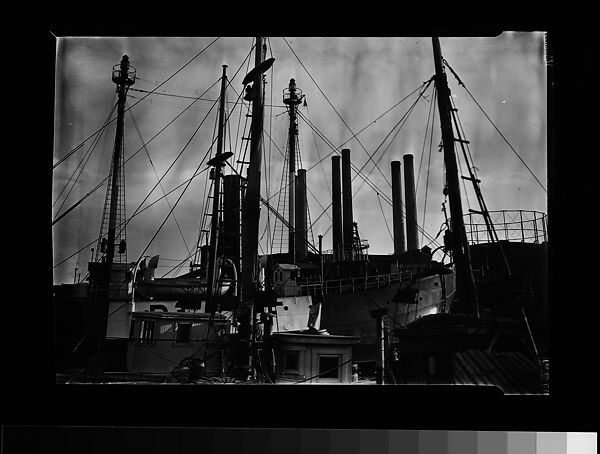 - Title: [Port Scene of Ships' Masts, Rigging, and Factory Smokestacks, New York City]
