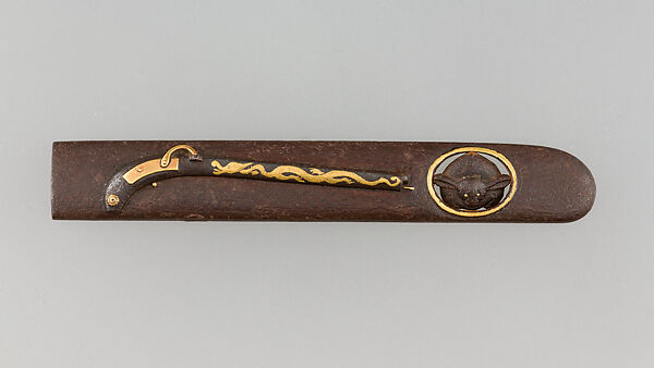 A kozuka is a handle of a by-knife that is part of a sword mounting. It is kept in a slot on the reverse of a katana scabbard, often with a matching kōgai (hairdressing tool).