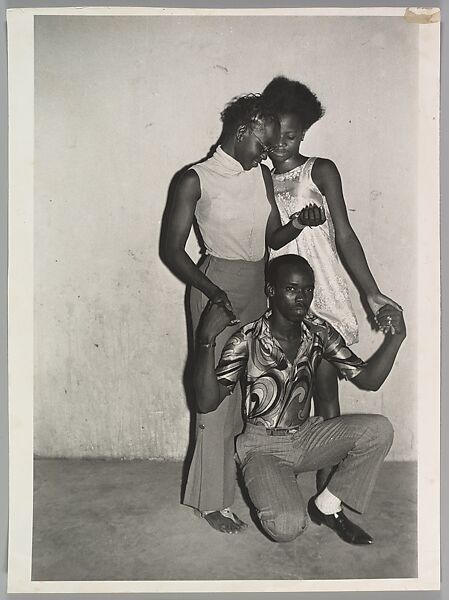 In the decades before and after Mali achieved independence from France in 1960, Sidibé operated a highly regarded commercial photography studio in the capital city of Bamako and made thousands of portraits for a burgeoning middle class. His work first came to the attention of the art world in 1995, when the Paris-based Fondation Cartier exhibited his lively images of Bamako youth taken at parties and Sunday picnics. This print of two women looking at a picture and a stylish young man directly addressing the camera—while all three are "nonchalantly" arranged in pyramidal composition—highlights the self-consciousness and skill with which Sidibé and his subjects represented themselves to the contemporary world.