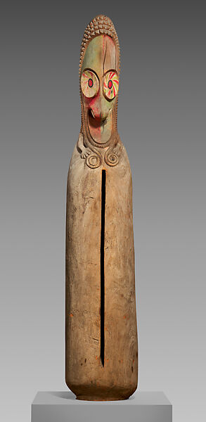 The towering slit gongs of northern Vanuatu are among the largest musical instruments in the world. Found primarily on Ambrym, Malekula, and neighboring islands, they are carved from the trunks of breadfruit trees, which are also an important food source. In each village, a number of gongs, comprising a sort of informal orchestra, stand on the village dancing ground. Gong orchestras are played at major social and religious events such as initiations, funerals, and dances. When playing, the musician stands in front of the gong and strikes the lip of the slit with a clublike wooden beater. As the gong ensemble is played, rhythms of immense variety and complexity can be produced by the carefully coordinated actions of multiple drummers.