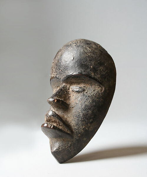 Most Dan face masks genre, and those of the culturally related groups of Côte d’Ivoire and Liberia, are commonly executed in a miniature form, ranging in height between 6 and 20 centimeters. Even the largest miniatures are too small to be worn in front of the face, and they rarely exhibit any means by which they may be attached to anything. The most common mask type represented in such diminutive form is deangle (attractive mask with slit eyes, performs a feminine behavior) while the least common miniature forms are masks with tubular eyes and animal mouths.
