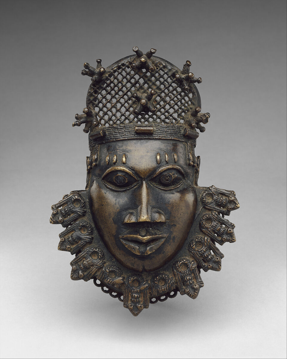 At these palace festivals, the powers of the king, the roles of the various chiefs and titleholders, and the relationships between them are displayed for all to see. The arts play an important role in these rituals. The king and other participants wear their most lavish ceremonial costumes, consisting of vast quantities of costly imported coral beads, luxurious textiles, and ornaments made of gleaming brass and creamy ivory. This ornament in the shape of a man's face was part of such a costume, and was meant to be worn around the waist.