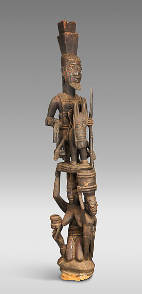 This monumental work was one of a series of carved architectural supports designed for the exterior courtyard of a Yoruba palace. It was commissioned by a king from the most renowned master sculptor in the history of Yoruba art, Olowe of Ise.
