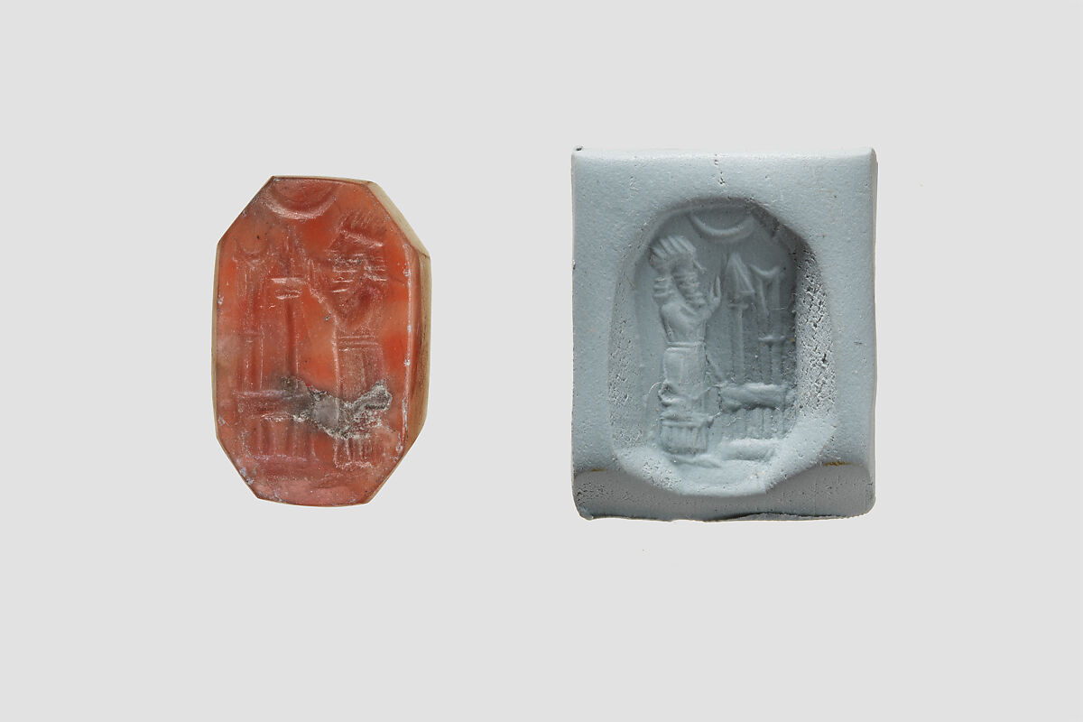 • Title: Stamp seal (octagonal pyramid) with cultic scene