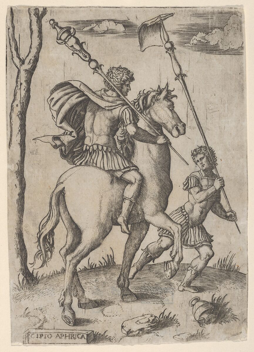 - Title: Scipio Africanus on horseback preceeded by a foot soldier holding a standard