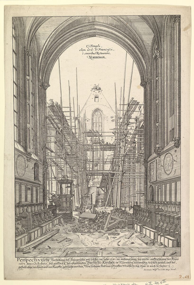 - Title: View of the Church of the Franciscans in Nuremberg under Reconstruction, from the series Views of Nuremberg