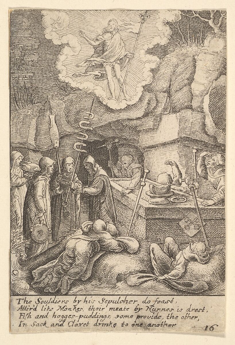 Plate 16. The resurrected Christ stands on clouds while monks and nuns feast at his tomb, after a follower of Hans Holbein