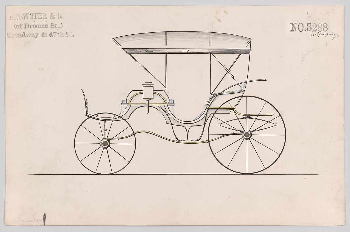 Talented draftsmen employed by the firm included Paul Steinbeck, Herman Stahmer and John Gribbon, the latter teaching at the Carriage Builders and Designers Technical School, which opened in 1880 and was housed initially at the Metropolitan Museum of Art. When the company finally dissolved in 1923, its last owner William Brewster (1866–1949) donated its archive of design and presentation drawings to the Museum where he served as benefactor and trustee.