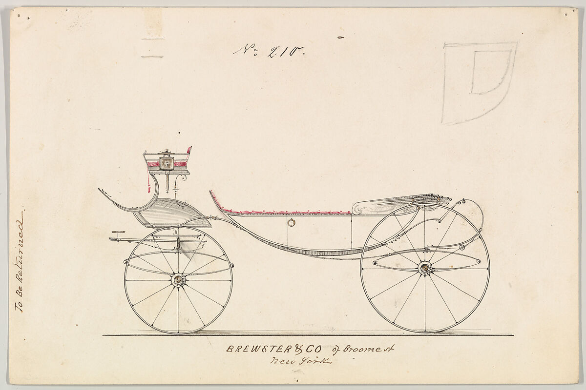 Talented draftsmen employed by the firm included Paul Steinbeck, Herman Stahmer and John Gribbon, the latter teaching at the Carriage Builders and Designers Technical School, which opened in 1880 and was housed initially at the Metropolitan Museum of Art. When the company finally dissolved in 1923, its last owner William Brewster (1866–1949) donated its archive of design and presentation drawings to the Museum where he served as benefactor and trustee.