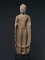 Early in the seventh century a new Buddha type appeared in Southeast Asia, inspired by innovations that were taking place in northern India. The wellspring was the important monastic school at Sarnath. Its workshops undoubtedly supplied Buddha images to a great variety of clients, including pilgrim-monks who would have purchased small images—often, one may surmise, made of wood—easily transportable to their homelands. This Buddha, slender and ethereal, is a superb example of the early acceptance of the northern Indian model of ideal Buddhahood, seen in the increasingly detached and otherworldly expression and the use of body-defining drapery.