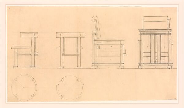 - Title: Design for Round Club Chair and Lounge Chair, side and rear views