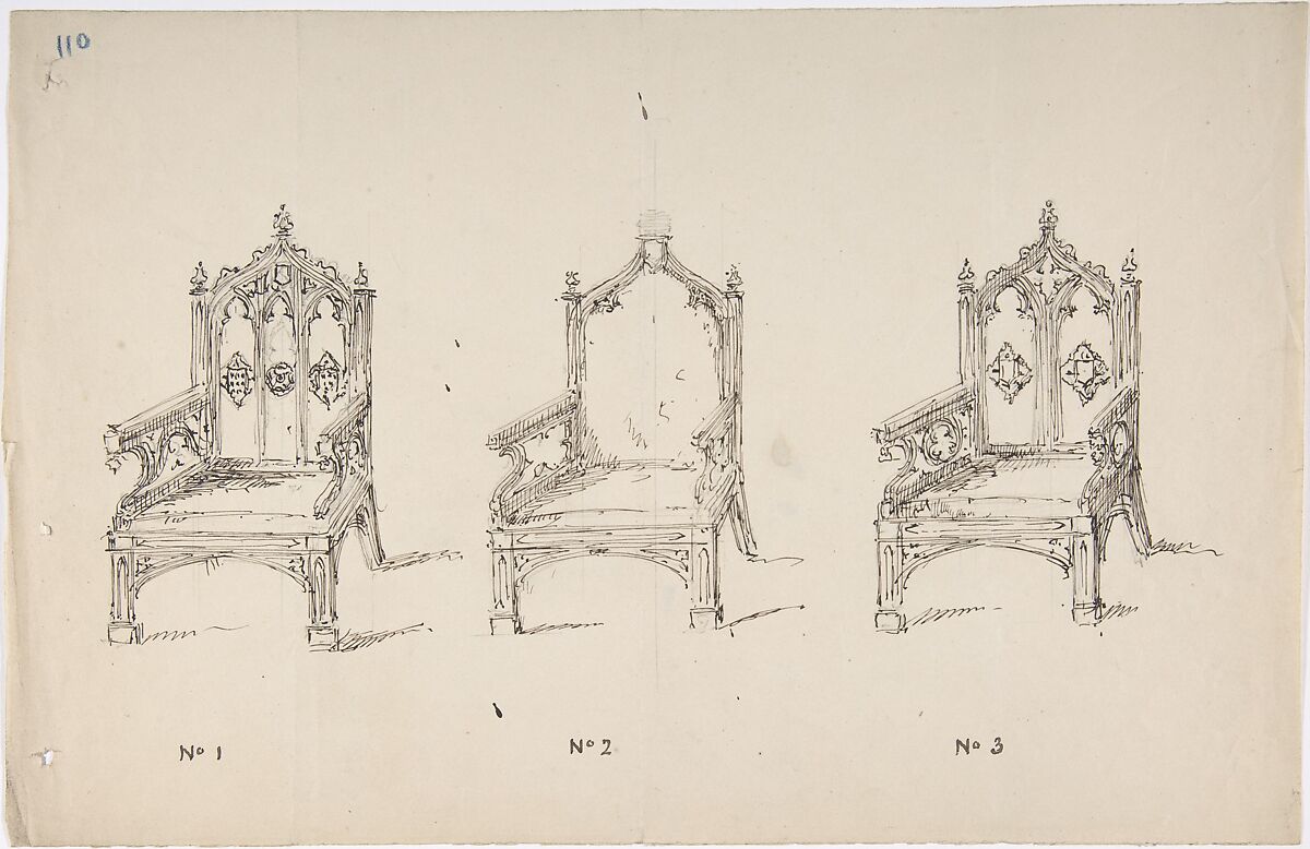 - Title: Design for Three Low Gothic Style Arm Chairs