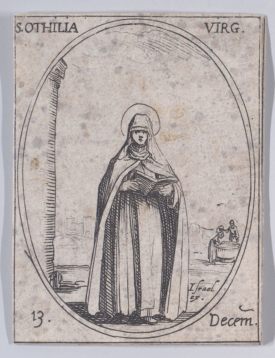 - Title: Ste. Othilie, vierge (St. Odilia, Virgin), December 13th, from "Les Images De Tous Les Saincts et Saintes de L'Année" (Images of All of the Saints and Religious Events of the Year)