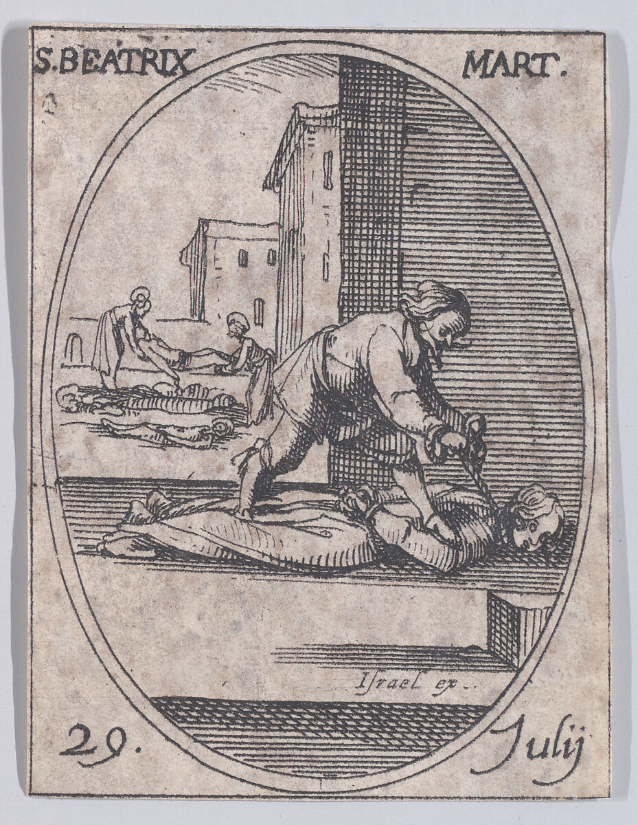 - Title: St. Beatrix, Martyr, July 30th, from "Les Images De Tous Les Saincts et Saintes de L'Année" (Images of All of the Saints and Religious Events of the Year)